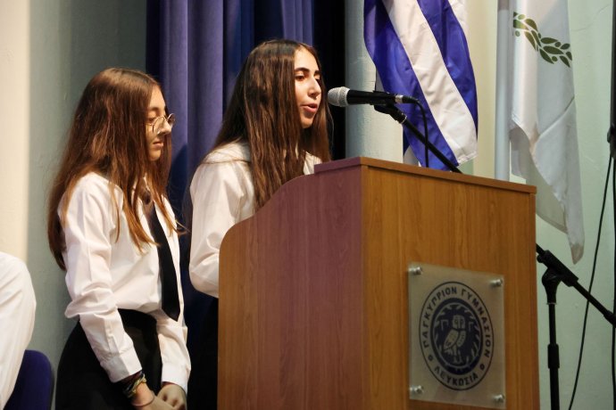 Η Τελετή άρχισε με την είσοδο των τελειοφοίτων και τη δέηση. Ακολούθησαν η αποτίμηση του σχολικού έργου και η προσφώνηση από τη Διευθύντρια του Σχολείου, κ. Μαρία Μορφή. Στη συνέχεια, τον λόγο πήραν οι πρωτεύσασες μαθήτριες Βασιλική Παπαδοπούλου και Στυλιάνα Παπουή του τμήματος Γ03, με την αντιφώνησή τους.