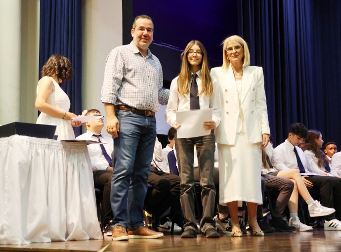 Κατά τη διάρκεια της Τελετής απονεμήθηκαν αριστεία, βραβεία και τιμητικές πλακέτες, ενώ οι τελειόφοιτοι αποχαιρέτησαν τον γυμνασιακό κύκλο παραλαμβάνοντας τα απολυτήριά τους.