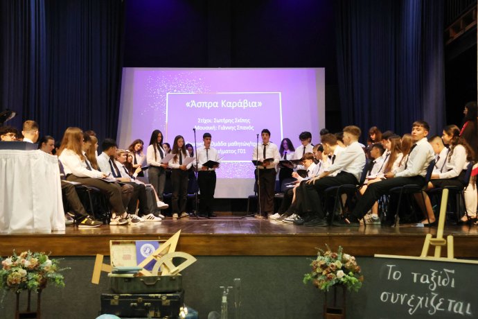 Η Τελετή ολοκληρώθηκε με τραγούδια από μαθητές και μαθήτριες του Γ01 και με την προβολή βίντεο, το οποίο περιλάμβανε στιγμιότυπα από τα τρία χρόνια της μαθητικής ζωής στο Γυμνάσιο.