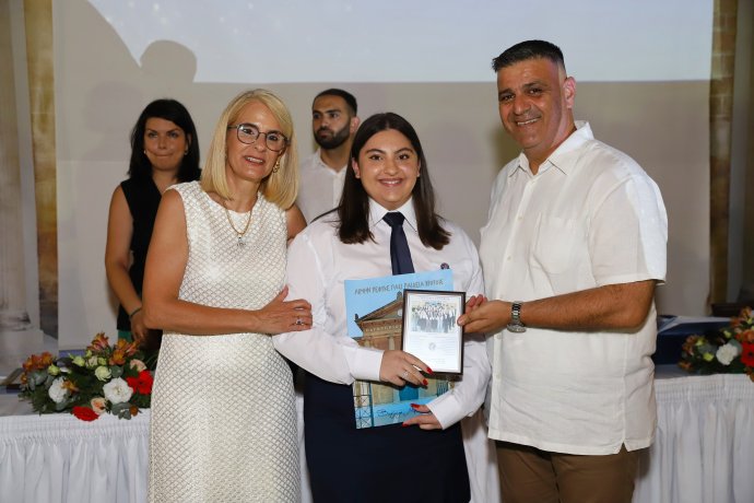 Στη συνέχεια, επιδόθηκαν τα Αριστεία της ΣΤ’ τάξης μαζί με ενθύμιο εκ μέρους του Συνδέσμου Γονέων και Κηδεμόνων και απονεμήθηκαν τα Βραβεία από τους Αθλοθέτες. Τέλος, έγινε η επίδοση των Απολυτηρίων και των Πιστοποιητικών από τη Διευθύντρια καθώς και της αναμνηστικής πλακέτας του τμήματος κάθε παιδιού από τον Πρόεδρο του Συνδέσμου Γονέων και Κηδεμόνων.