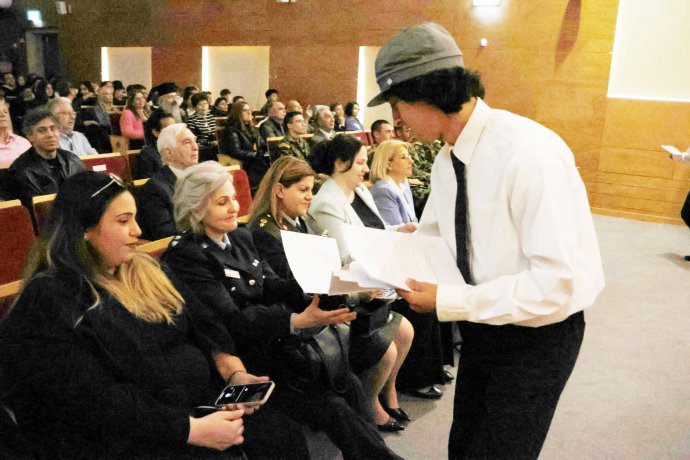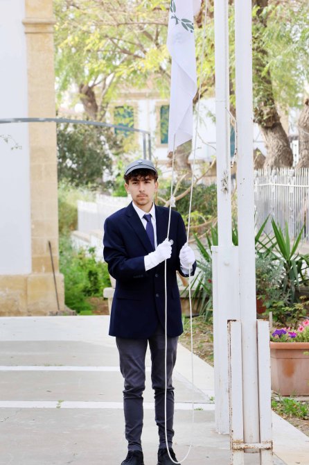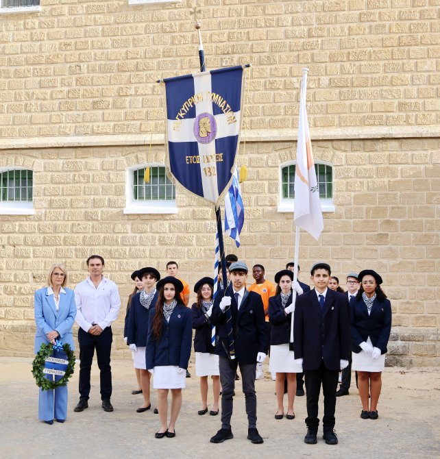 Στη συνέχεια, έγινε η έπαρση των σημαιών και η στέψη των ηρώων του Παγκυπρίου Γυμνασίου, στα προπύλαια και στον διάδρομο της πτέρυγας Θεοδότου, όπου έγινε και η ιστορική Μάχη της Σεβερείου Βιβλιοθήκης, μεταξύ των μαθητών του Σχολείου και των Άγγλων αποικιοκρατών.