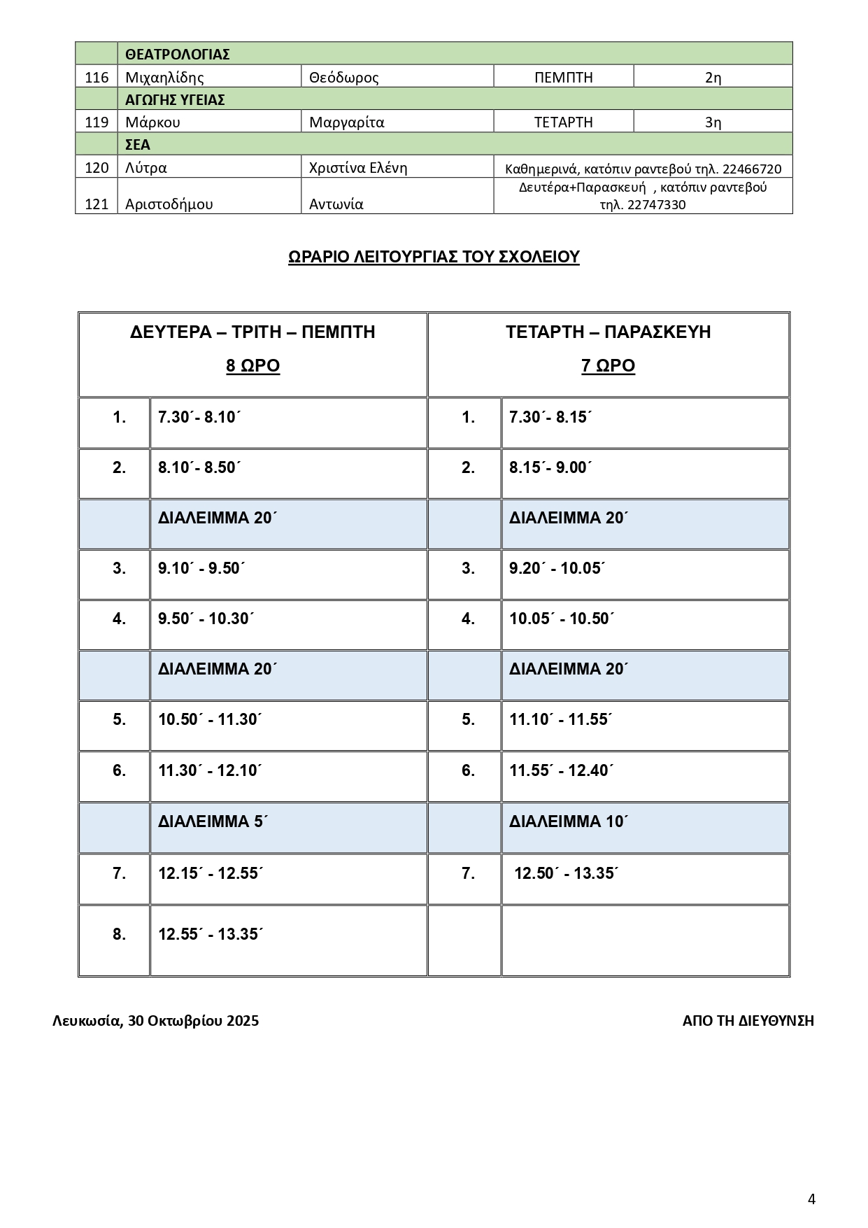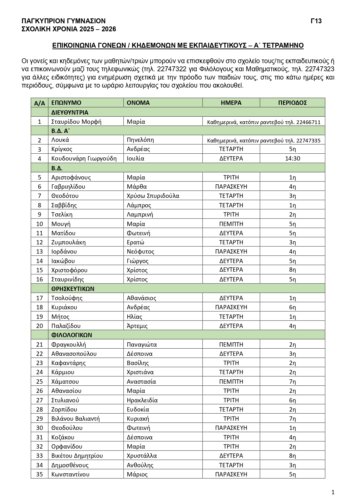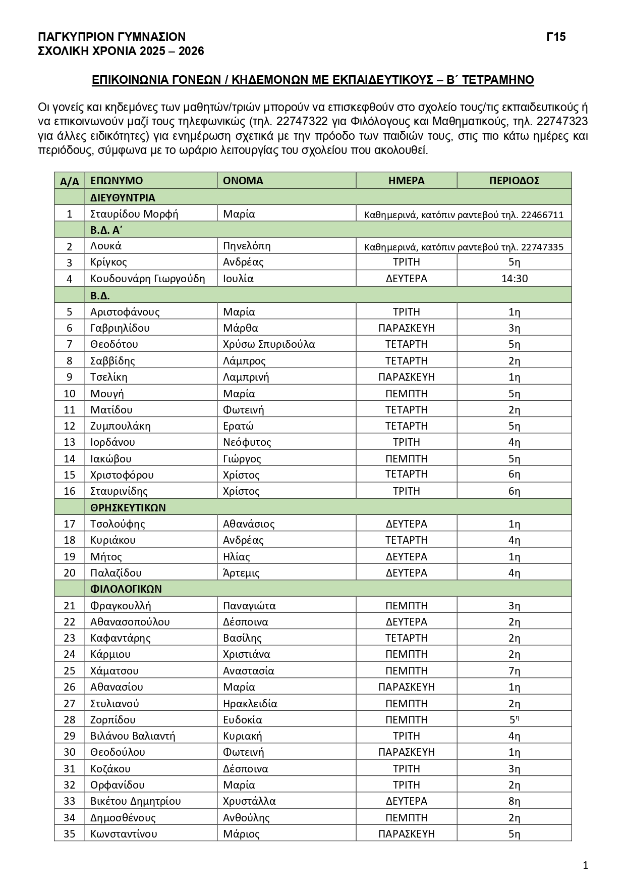 Εσωτερικά Τηλέφωνα Παγκυπρίου Γυμνασίου