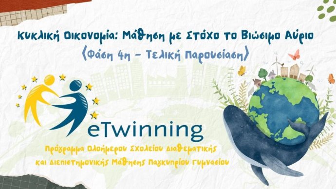 Σήμερα διεξήχθη με επιτυχία η τελική διαδικτυακή συνάντηση του Ευρωπαϊκού προγράμματος eTwinning με θέμα «Κυκλική Οικονομία», με το Παγκύπριο Γυμνάσιο να συμμετέχει ως συνιδρυτής, μαζί με το Αρσάκειο Λύκειο Πάτρας.
