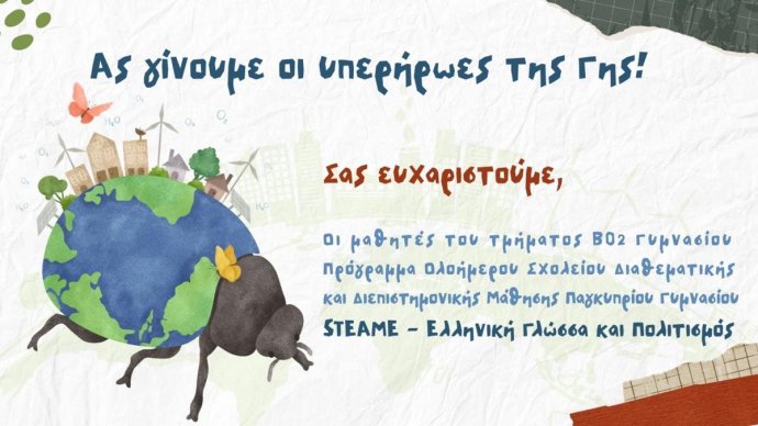 Συγχαρητήρια στους/στις μαθητές/τριές μας για τη συμμετοχή τους στο πρόγραμμα. Ευχαριστίες και στον υπεύθυνο καθηγητή, Γιάννη Λαζάρου, για την καθοδήγηση των μαθητών/μαθητριών και τον συντονισμό της δράσης.